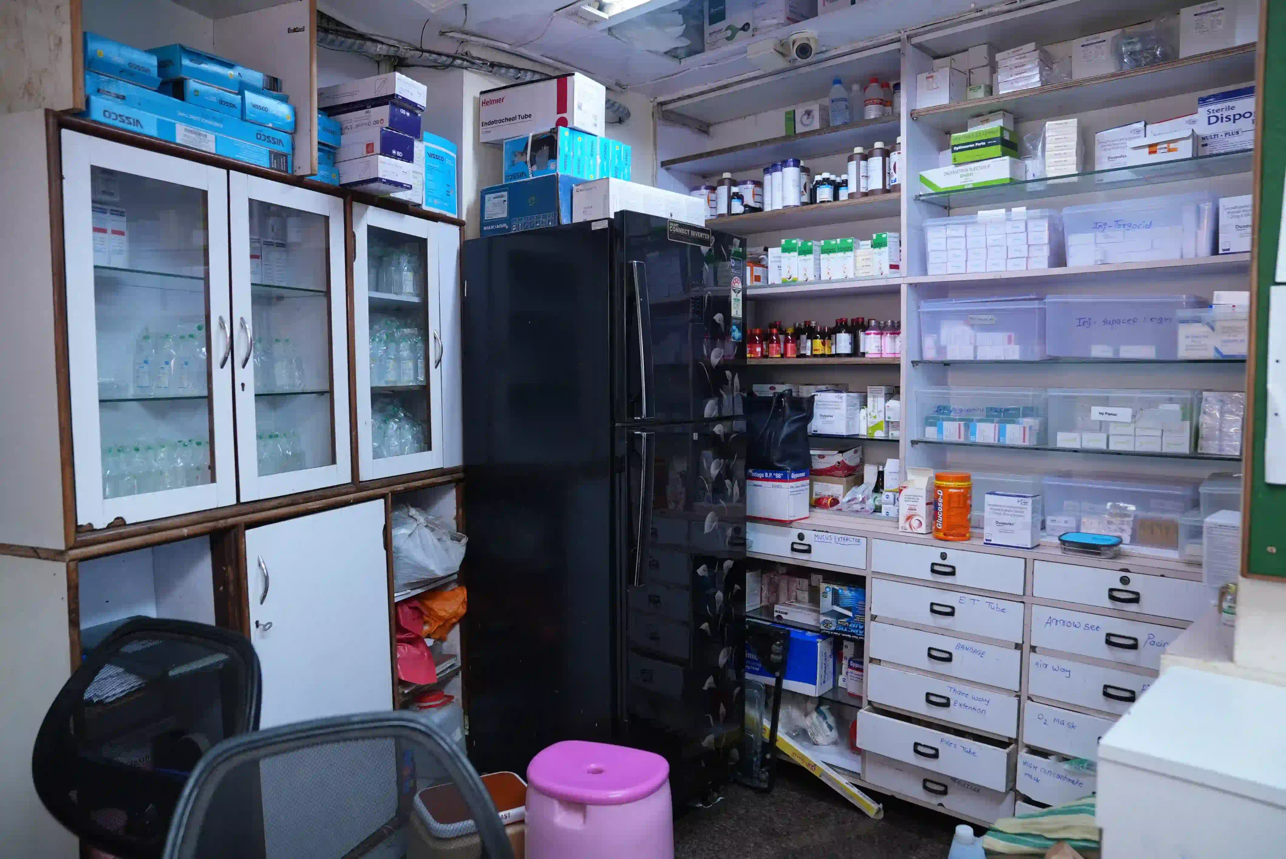 Onsite pharmacy for round-the-clock access to essential and emergency medicines. NABH-standard inventory handling and temperature-controlled storage.